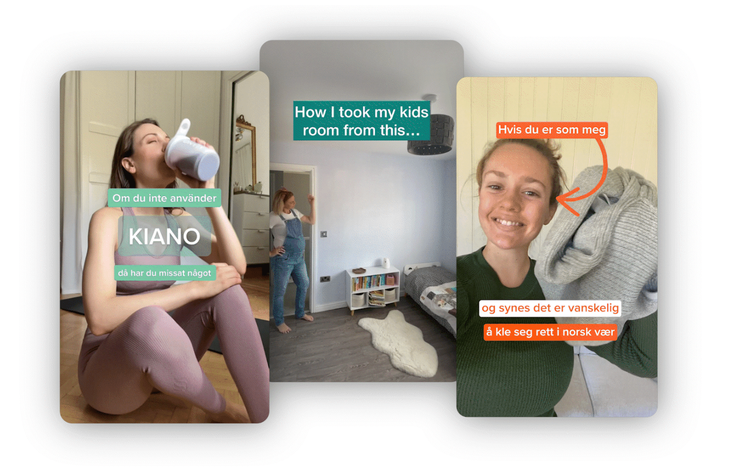 • Film enkle reklamevideoer i TikTok format for Skandinavia's mest populære merkevarer